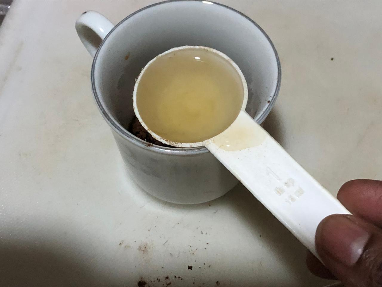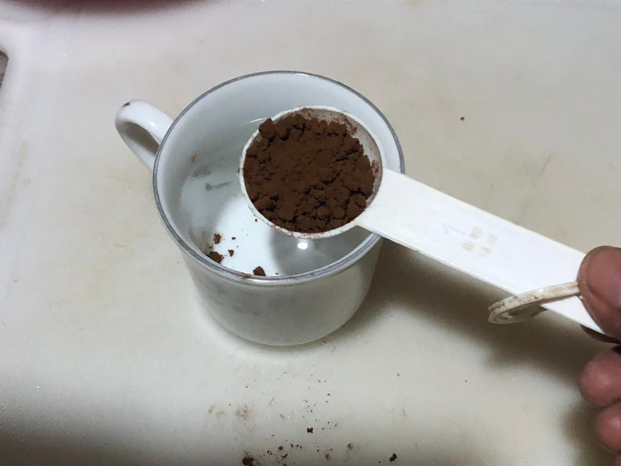 I will mix a spoonful of coffee well in two spoons of hot water and then leave it to cool.