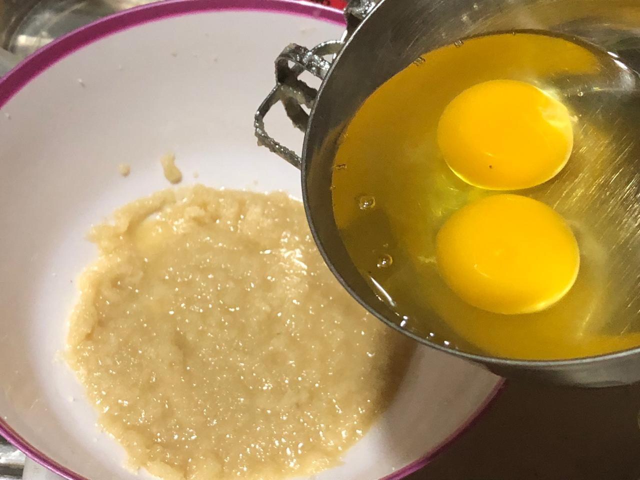 1.In the first stage, take a light bit of butter and sugar mixture in a clean bowl. Sugar takes a while to melt in the butter so I'll beat well with the bitter machine for a long time to make the smooth batter, must be bitten well and in a slow , the sugar and butter mixture does not become over-beaten.