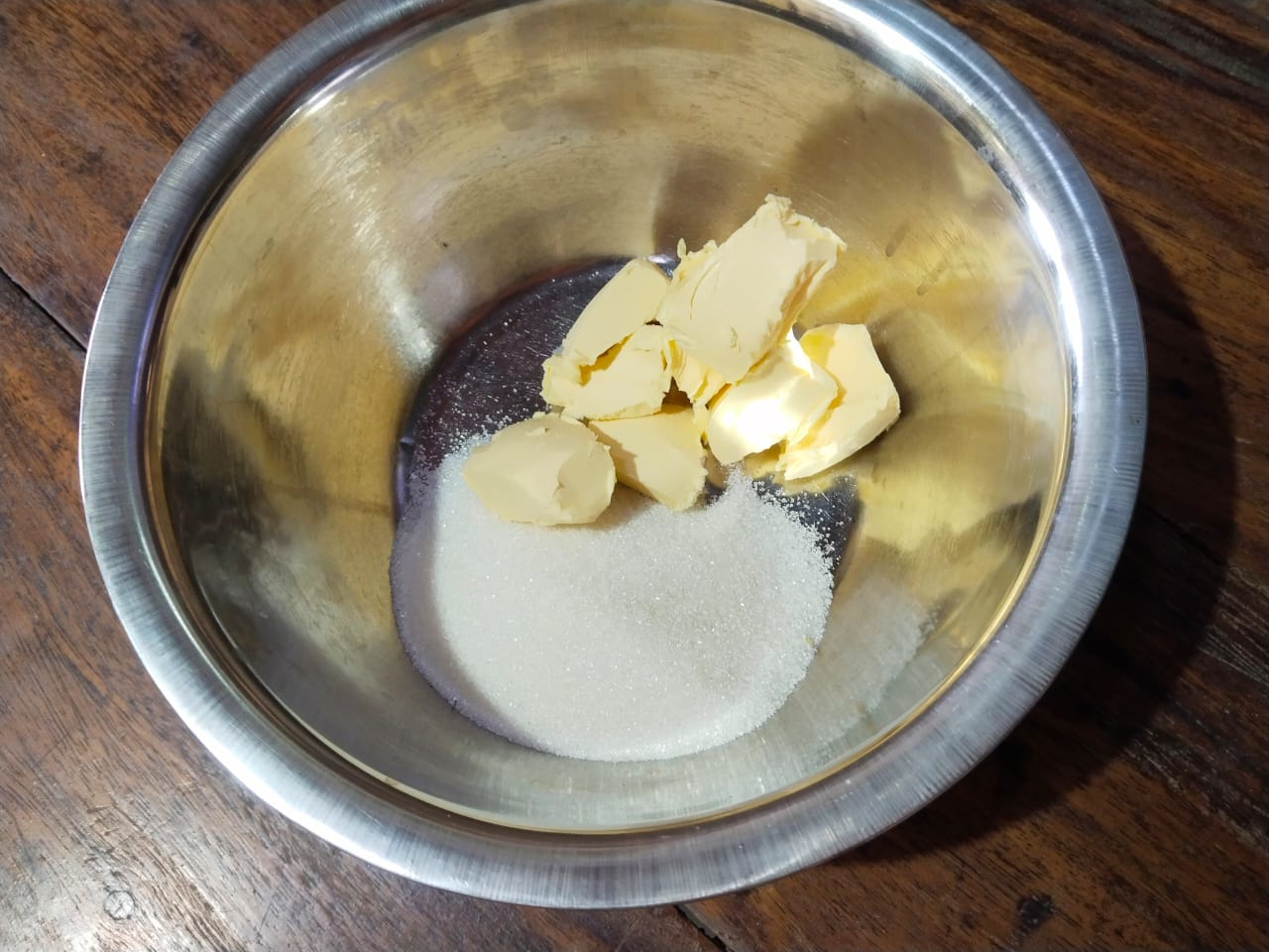 - First, take a clean bowl. Then, add the required amount of butter and sugar to the bowl and beat it well for a while.