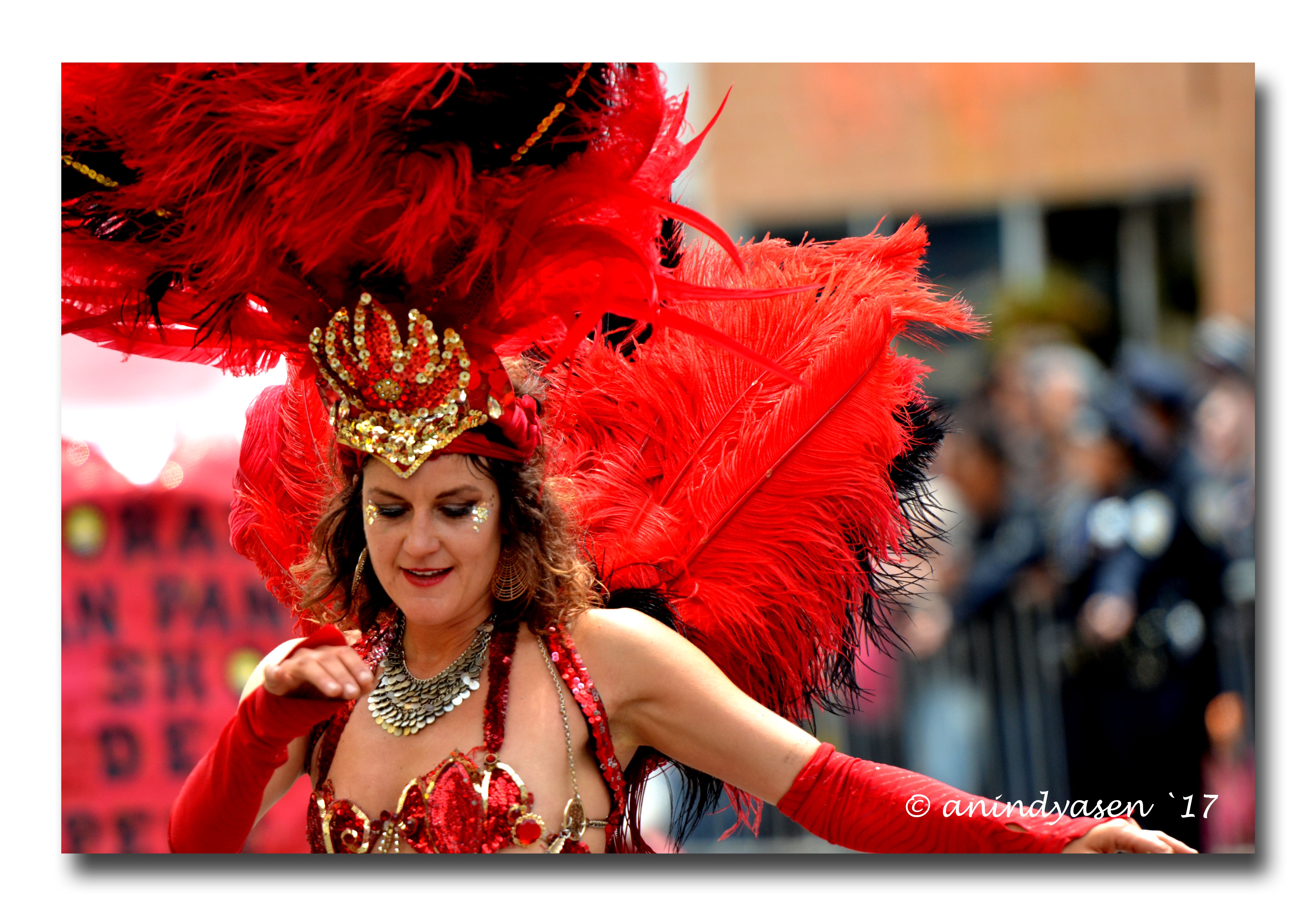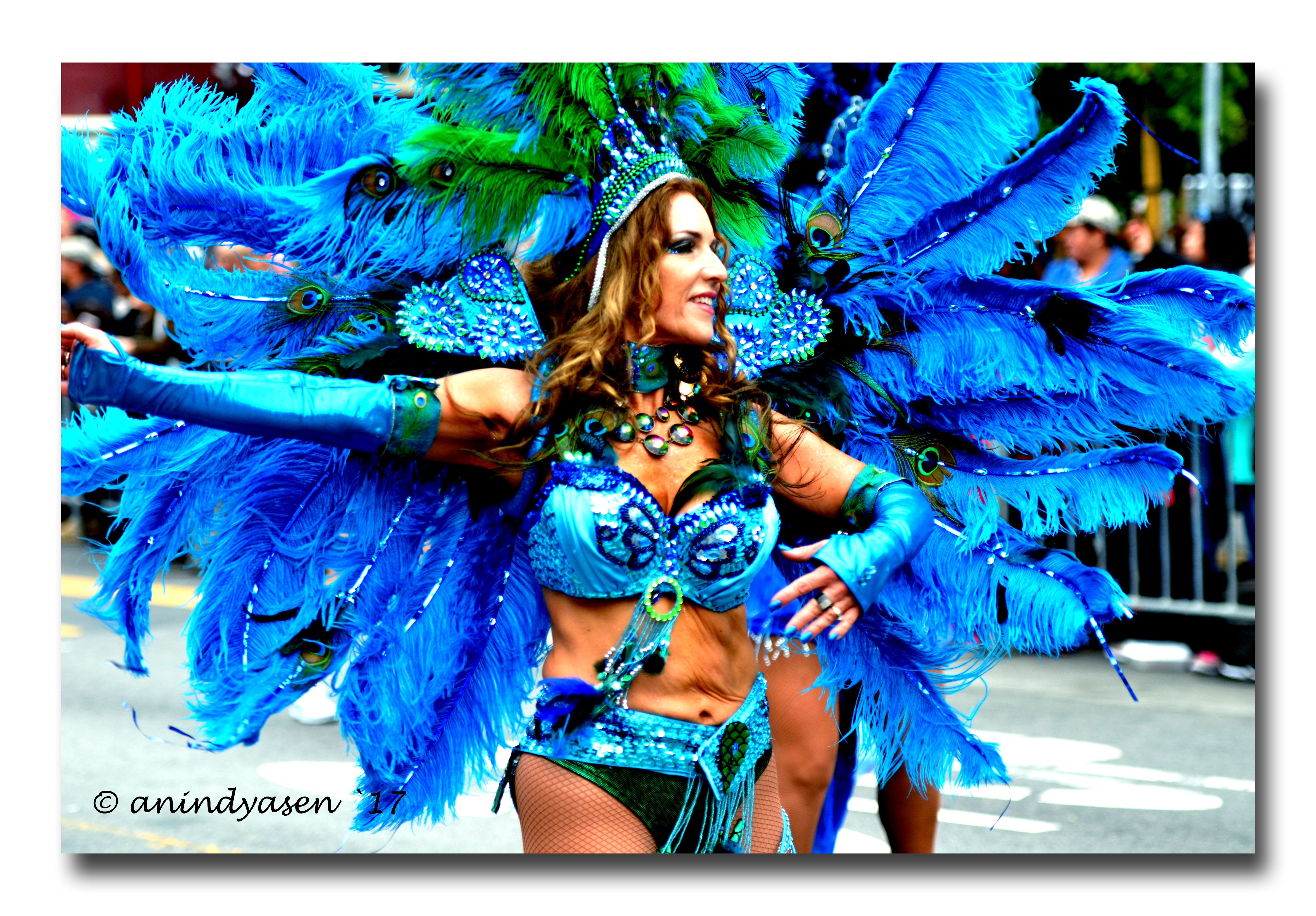 A brilliant procession of beautifully adorned floats and stunning dancers with feathered headdresses, floral headbands and swirling skirts graced the streets of San Francisco on Sunday, May 28th 2017 to celebrate “Carnaval”, which is an annual 2day street parade and festival celebrated over memorial day weekend and is by far the largest multicultural celebration on the West Coast.
