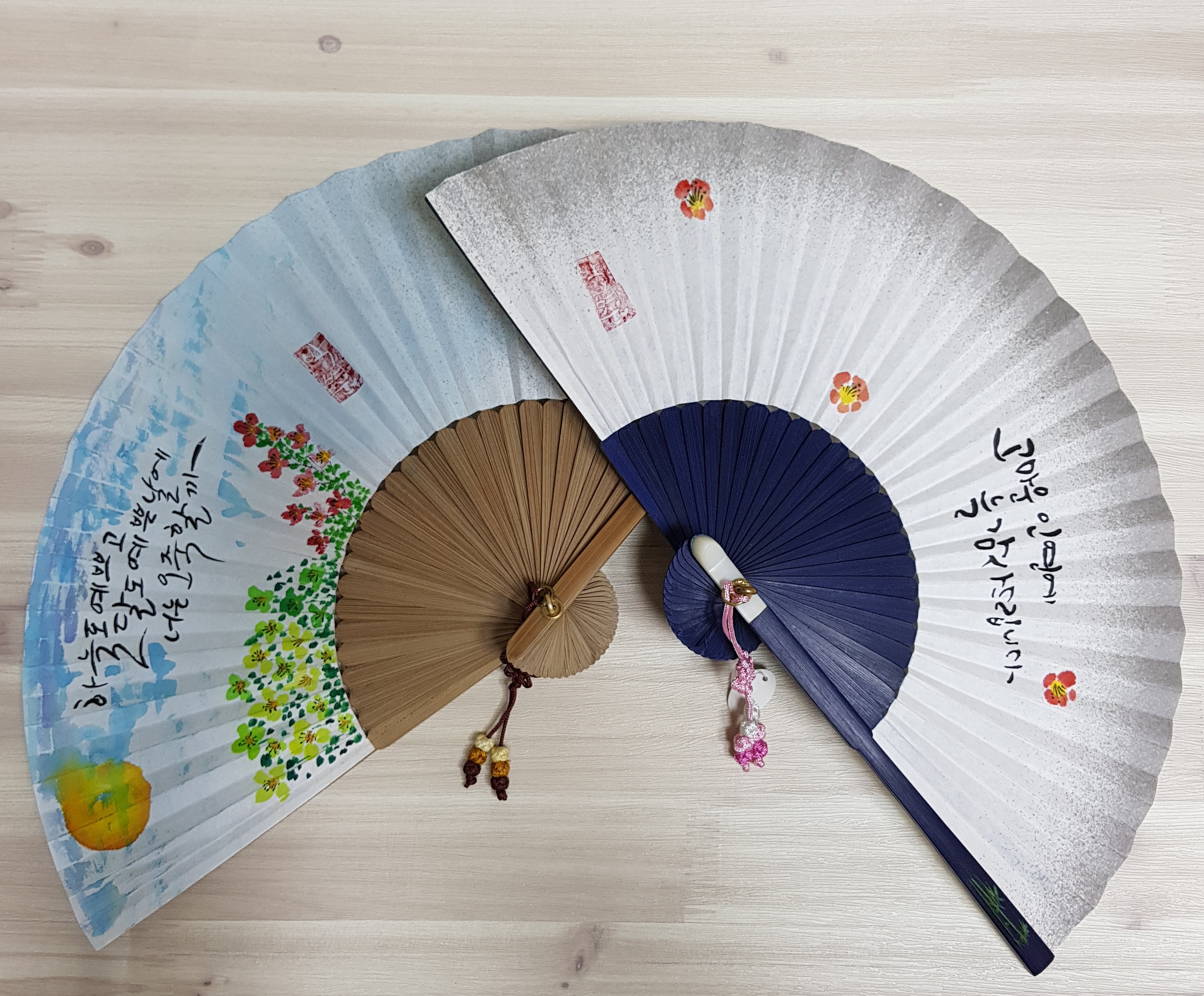 이 부채는 캘리그래피 작업을 통해 수작업 만들었습니다.