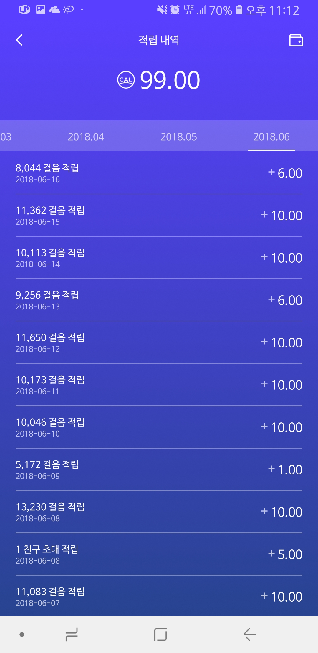 오늘 1만 보 달성을 못해서 칼로리코인은 6칼로리코인 채굴되었구요~. 그래도 뿌듯합니다. ^^