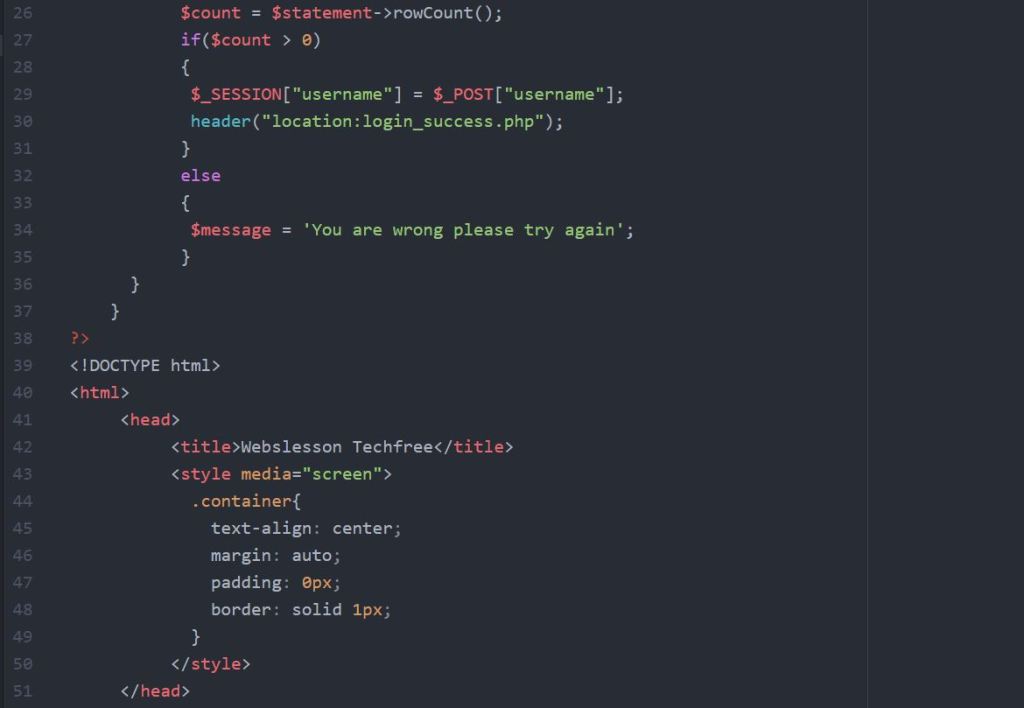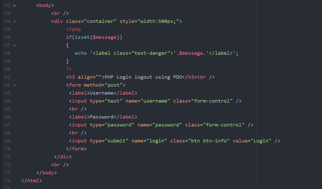 ២) ធ្វើការបង្កើតទម្រង់ Login ដោយធ្វើការសរសេរកូដដូចខាងក្រោម៖