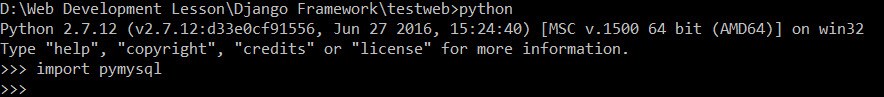នៅពេលដែលអ្នកដំណើរការ command ខាងលើចប់ សូមដំណើរការ command “import pymysql” ប្រសិនបើអត់មានបញ្ហាអ្វីនោះ pymysql ដណើរការហើយ។
