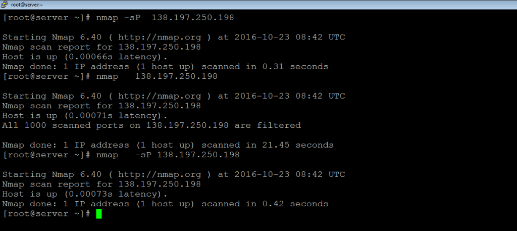 នៅពេលដែលយើងមិនប្រើប្រាស់ ធម្មតា វាបង្ហាញថា Filter មានន័យថាគេបិទមិនអោយ Scan ដូចនេះយើង Tracert ទៅក៏វាឆ្លើយថា time out ជាដើម ទាល់តែ Tracert ទៅផុតបានវាស្គាល់វិញ។បញ្ហានេះយើងអាចប្រើប្រាស់ -sP ដើម្បី Scan ទើបអាចដឹងថាតើ IP នោះដំណើរការឬអត់។