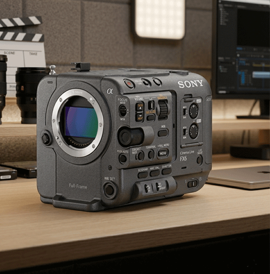 Bring every frame to life with the Sony FX6 Full-Frame Cinema Camera. Featuring stunning 4K up to 120fps, full-frame cinematic depth, ultra-fast autofocus, and Sony’s signature S-Cinetone color, it’s built to turn creative visions into powerful visual stories. Perfect for films, ads, events, and professional content creation.