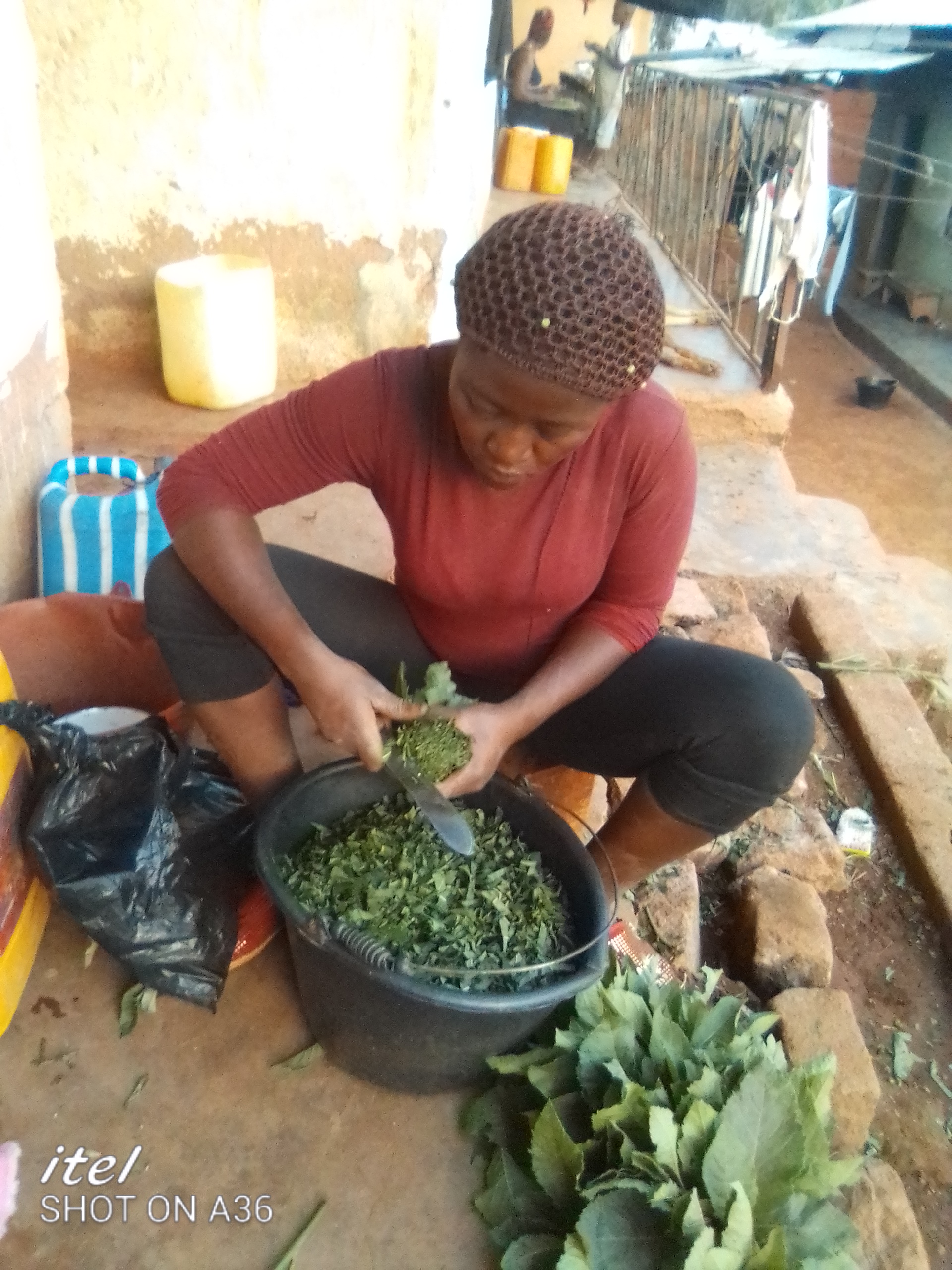 after waterering I now harvested some bitterleaf and left for home which I sliced washed and prepared