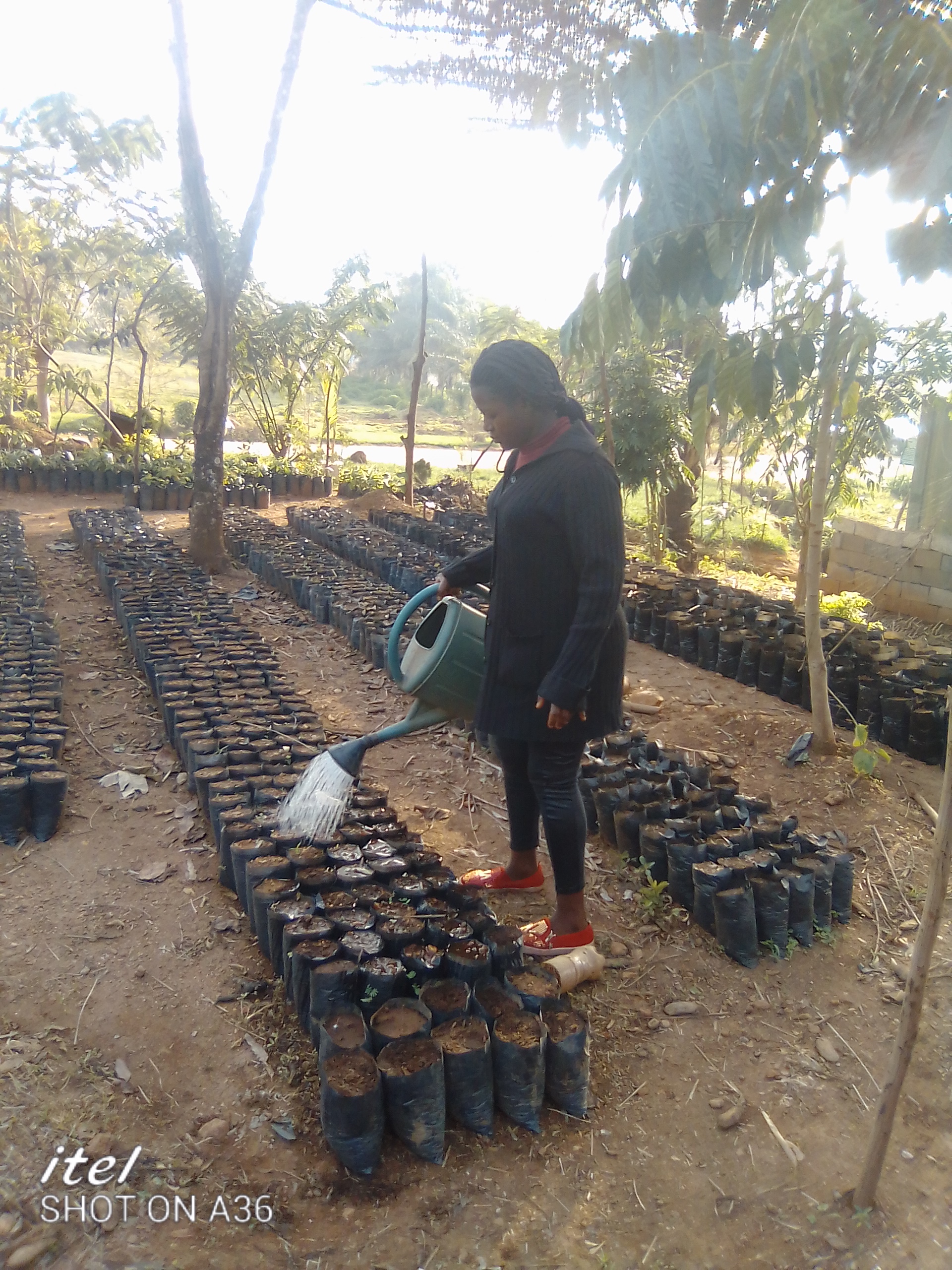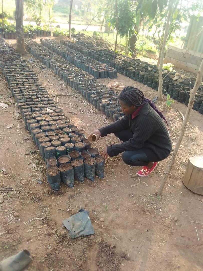 Hello to everyone in the steemit community hope we are all safe and sound, my day have been a stressfull but interesting one,I got up very early in the morning and after doing my morning prayers took some containers to fetch for drinking water ,I had to walk for a distance before I could get good drinking water, after which I sweep the compound and prepared breakfast,I woke up the children fed them an left for work,at the job side which is a nursery,I filled politin bags with soil