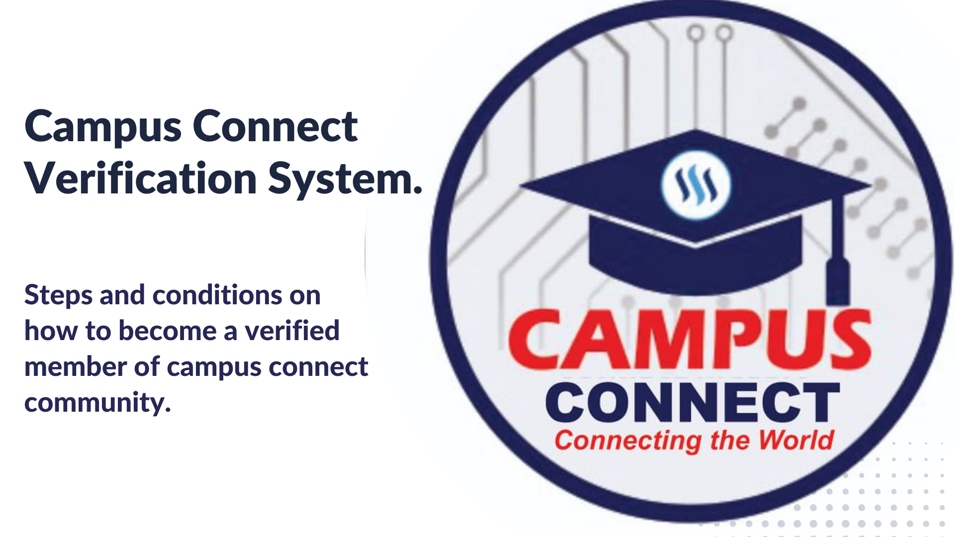 Community arrangement is very important thus a need for a verification system that will the campus connect team to keep track of community members and how best to support each publisher. This system will help campus connect members including newbies to get the best out of campus connect community. Our verification system will feature a simple and transparent process that will help steemians to get verified with ease.