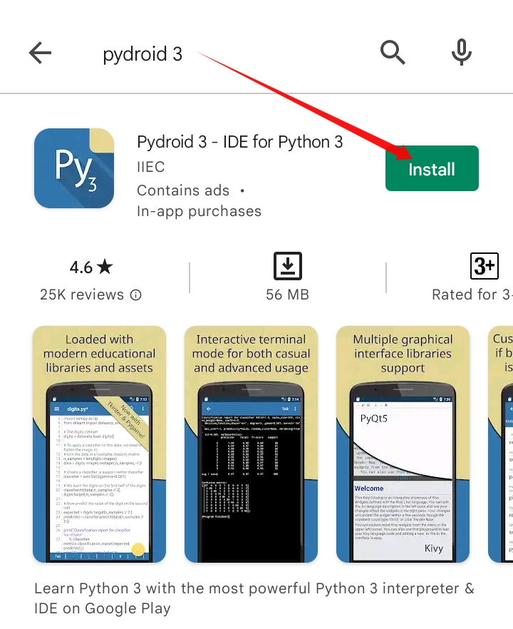 - You can easily get the Pydroid 3 IDE on Google Play Store