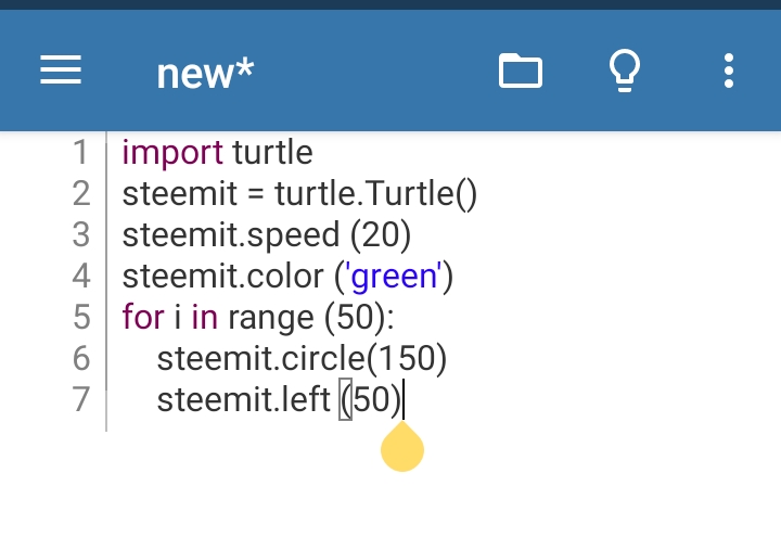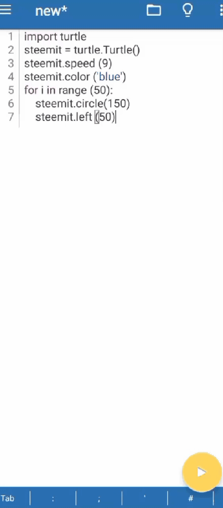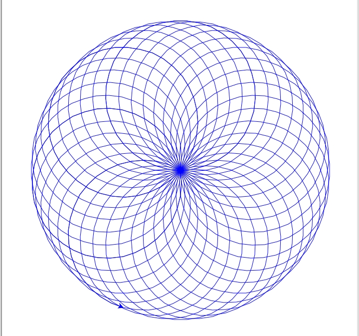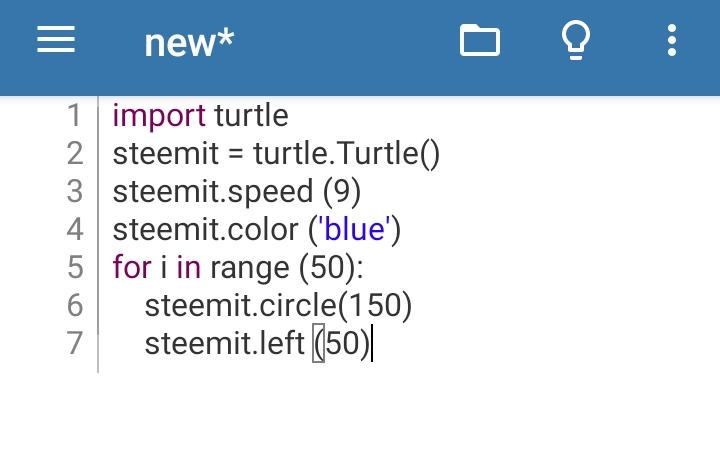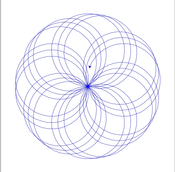 So I want my program to draw and design a circle-like image going anti-clockwise, and so I gave the program that instructions using the code "for i in range (50):