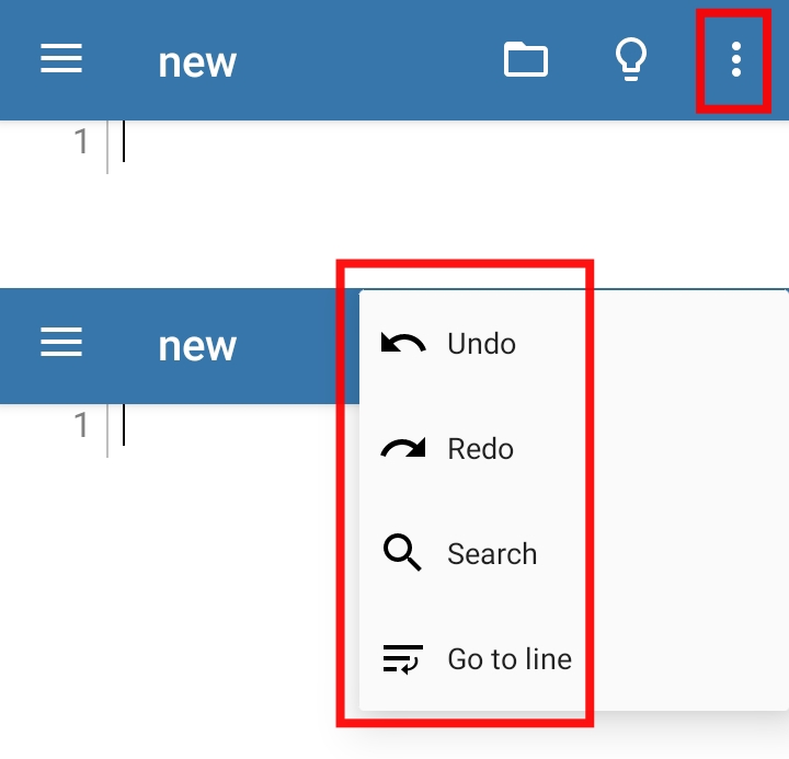 As you can see, the GUI is clear and understandable, like on the top right hand corner(3 dots) you would see that they is Undo, Redo, Search, and the Go to line.