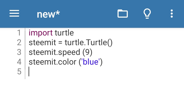 I want to give my design a color of my choice, so I would go for blue my favourite color. In coding it's "steemit.color ('blue')" then I proceed to line 5.