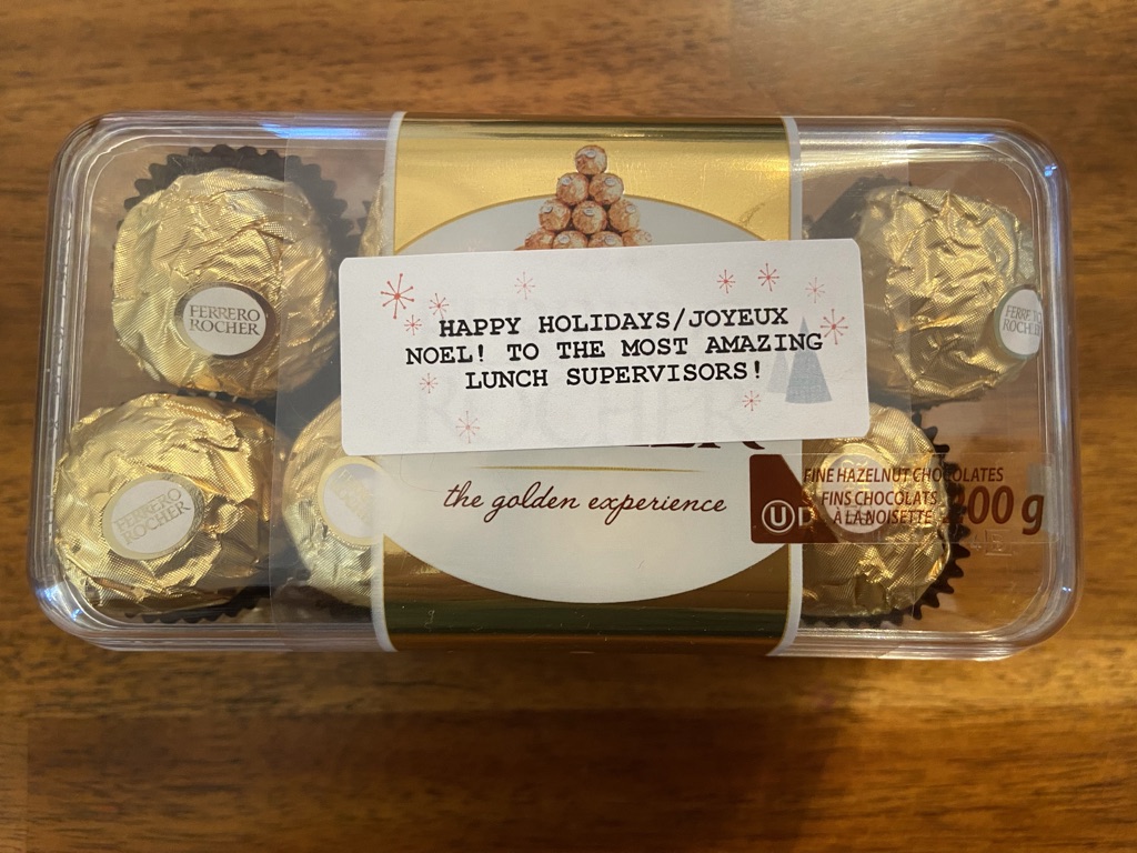 크리스마스 선물david1345 (63)in #canada • 4 years ago 딸내미 학교에서 런치수퍼바이저들한테 준 선물입니다. 매년 메니저 집에서 파티를 했었는데 코로나 이후로 크리스마스 파티도 모두 취소되었습니다. 한국도 새로운 바이러스 오미크론 때문에 난리겠지만 캐나다도 이번 크리스마스때 모임 인원제한이 생겨서 그냥 가족이랑 조촐히 크리스마스 즐겨야할것 같습니다. #winnipeg #merry #christmas #small #gift