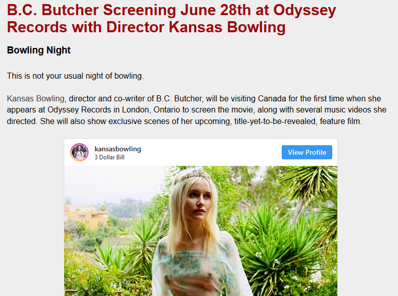 Read my interview with Kansas Bowling about the making of her feature film directorial debut (B.C. Butcher)