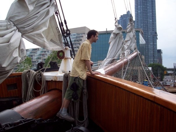 (Actual photo of me 11 years ago on a wooden war ship, The Bluenose. This ship is seen on Canada's ten cent coin called a dime.)