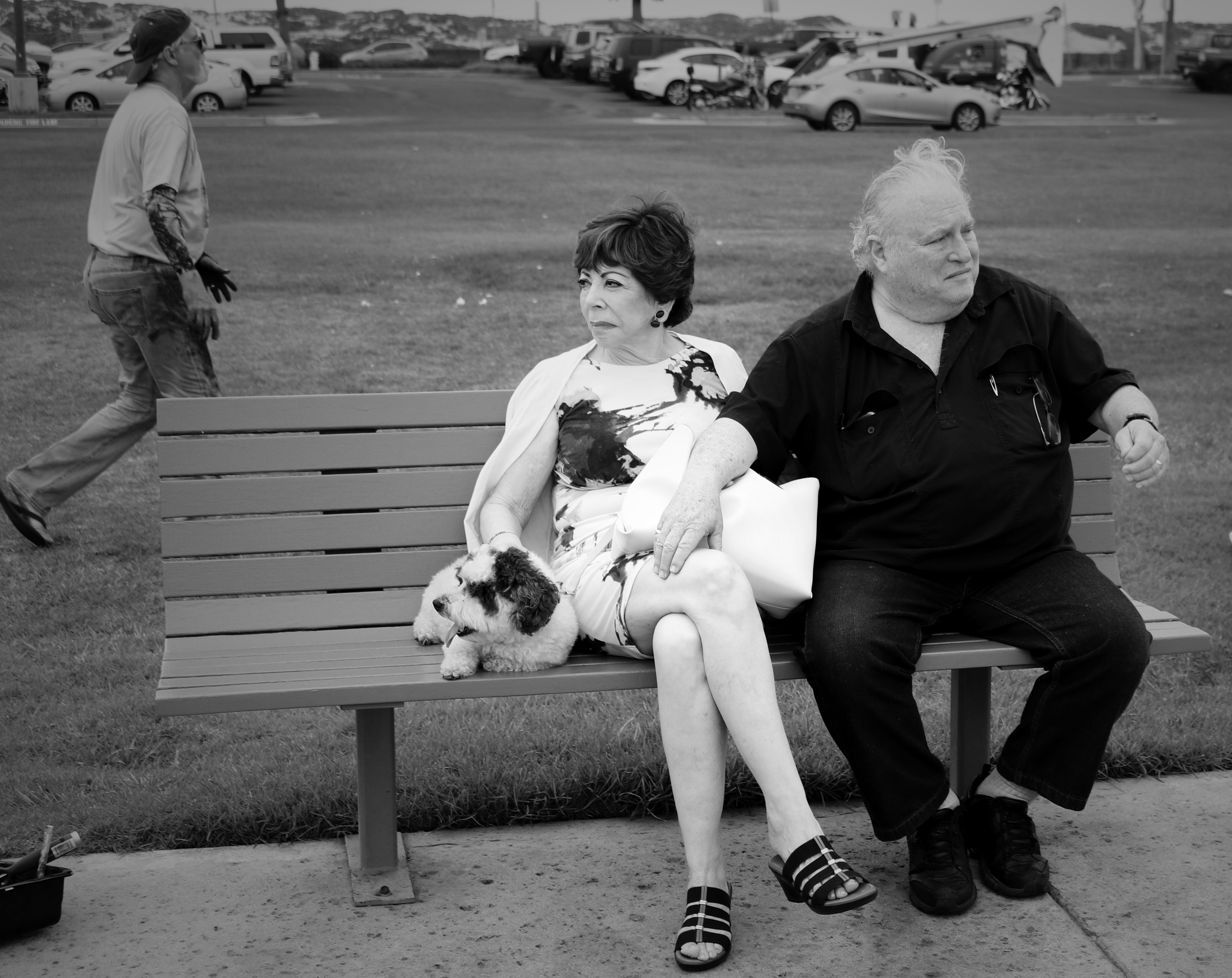 So, I'm at the Ventura Harbor for the Ventura Art and Street Painting Festival and I see this couple sitting on a bench in front of one of the chalk art pieces, and I think they have an interesting look. Well, I can't just point a camera at them and shoot, so I act all casual...checking out the chalk art and waiting for their attention to be elsewhere. If I were photographing the chalk art, I would have appreciated everyone walking by stopping to let me get my shot, but when my aim is to photograph the couple, all the traffic backing up on either side of them is just drawing attention as everyone waits for me to snap a photo of the art and move on. I snapped a picture, thanked everyone who held up to let me get my picture and then tried to linger until the crowd thinned out but by that time it was just starting to get weird so, in the end, this was the best picture I could get.