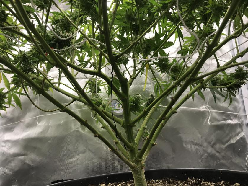The buds are really starting to swell, and fill in. There are even hues of purple coming in! I suspect if I was able to drop temps down below 70 they would really be more purple then green! I have been keeping the temp around 72-80 degrees the whole grow, and the terps on this baby are amazing! As of now the only issue I need to address are propping the buds up, since they are starting to get a little to heavy for the branches to support.