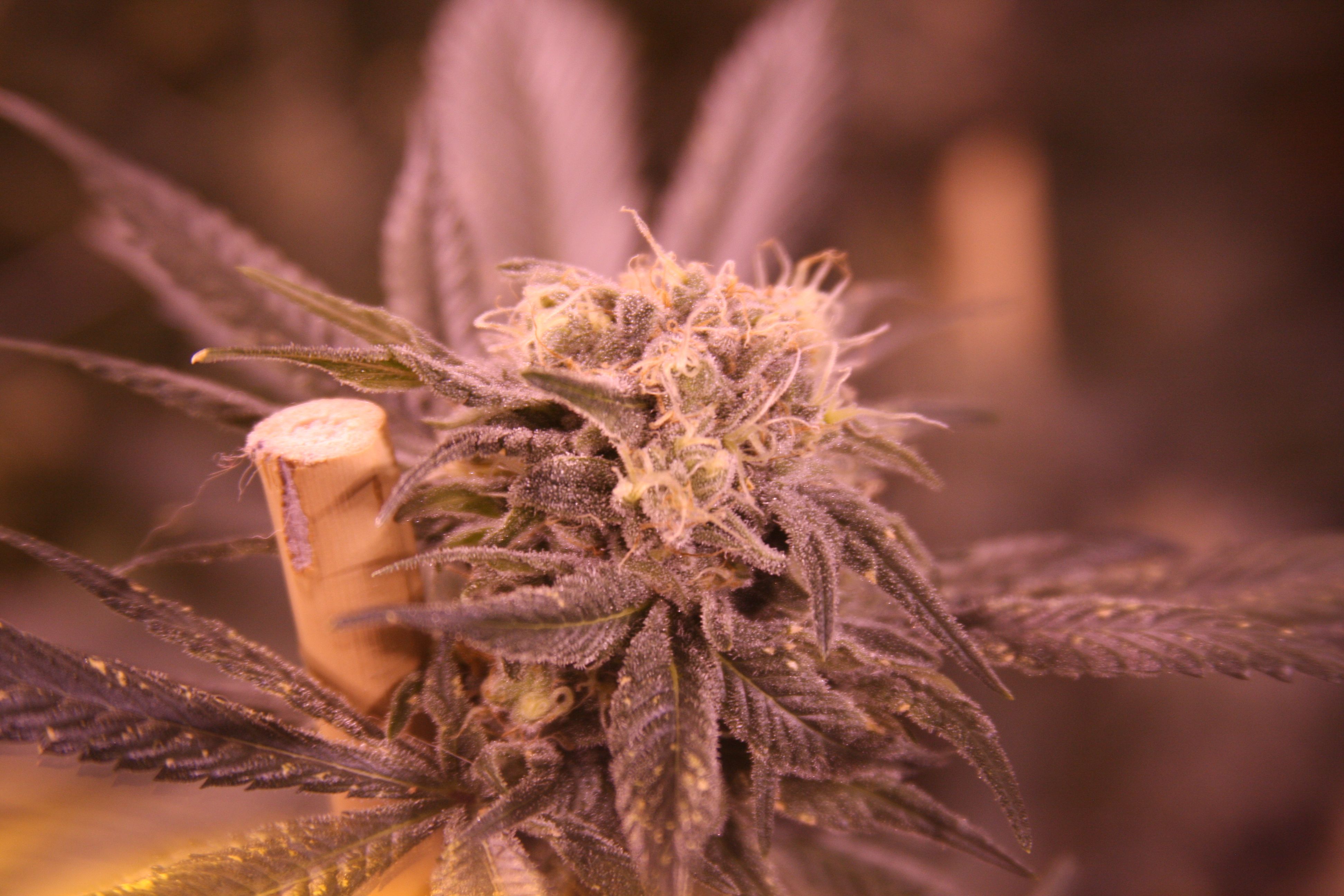 Disclaimer: First off, this is a mystery strain. It came to us under the name “Master Kush” but as you may be able to tell, the bud structure and growth pattern aren't much like master kush. Master kush is a short indica with tight internodal spacing. This plant is much taller, with very large internodal spacing. On top of this, both the growing bud and the cured bud smell extremely cheesy, the cured bud more so. It’s quite a different smell than actual master kush, unless this is a very unique pheno, which is highly unlikely.