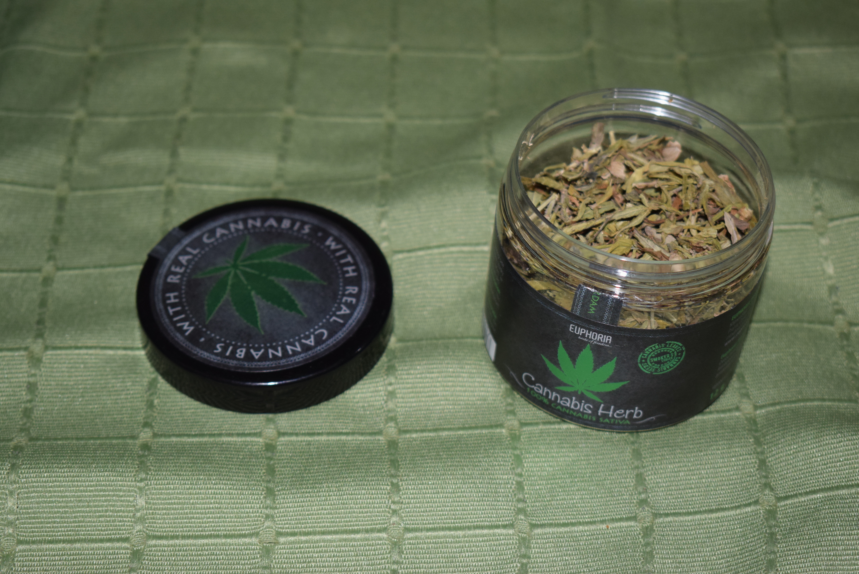 As claimed on the packet, it consists of no more than 0.2%Thc which as you might now, anything under 0.3%thc is classed as hemp. But let me say, after bunging the gram in a joint and smoking it with cellulose papers, i would say that there is actually at least 1-3% THC as my eyes have got heavy and somewhat red, and unless im mistaken CBD shouldn't have this effect on the eyes.