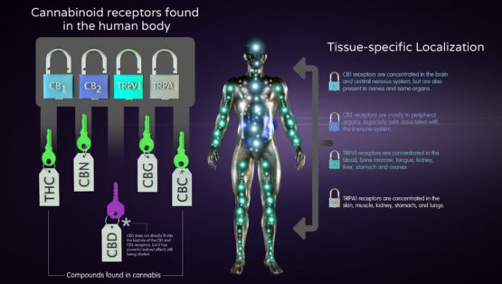 Bone cells in mammals have been shown to express special receptors for cannabinoids that help regulate bone metabolism, mass and cell function of bones. Cannabinoid receptor ligands are showing promise for treatment of bone diseases like osteoporosis, rheumatoid arthritis and bone metastasis.