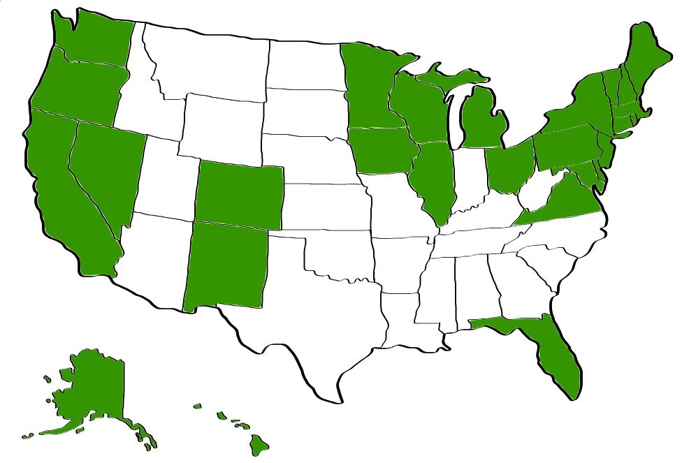 Of the 16 blue states, 7 have legalized recreational cannabis, or almost 44%. These states are Washington, Oregon, California, Illinois, Vermont, Massachusetts and Maine.