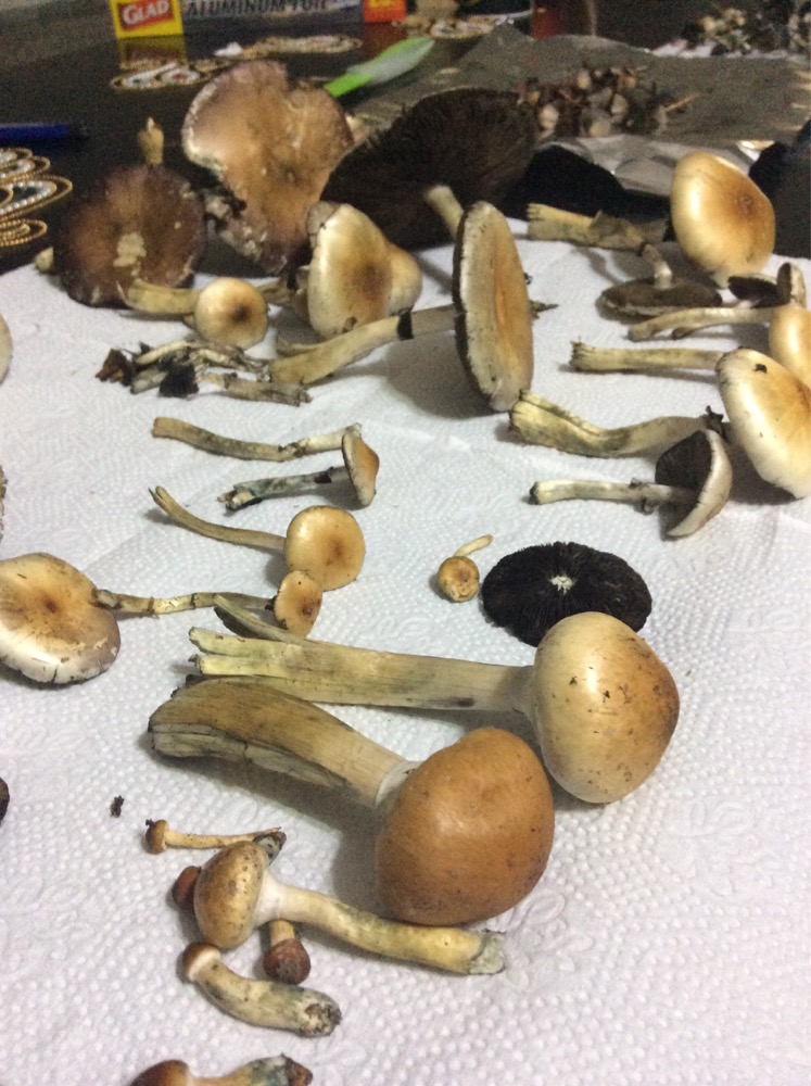 Wild @byronmushrooms.. Got some cubensis and panaeolus cyanescens.. I had me a super sweet spot but the staff got wise and seem to have relocated the cows to a less accessible area. I'm very much scouting for new locations as I got used to having tea waiting for me in the freezer at any time I felt like do things with the fun guy...