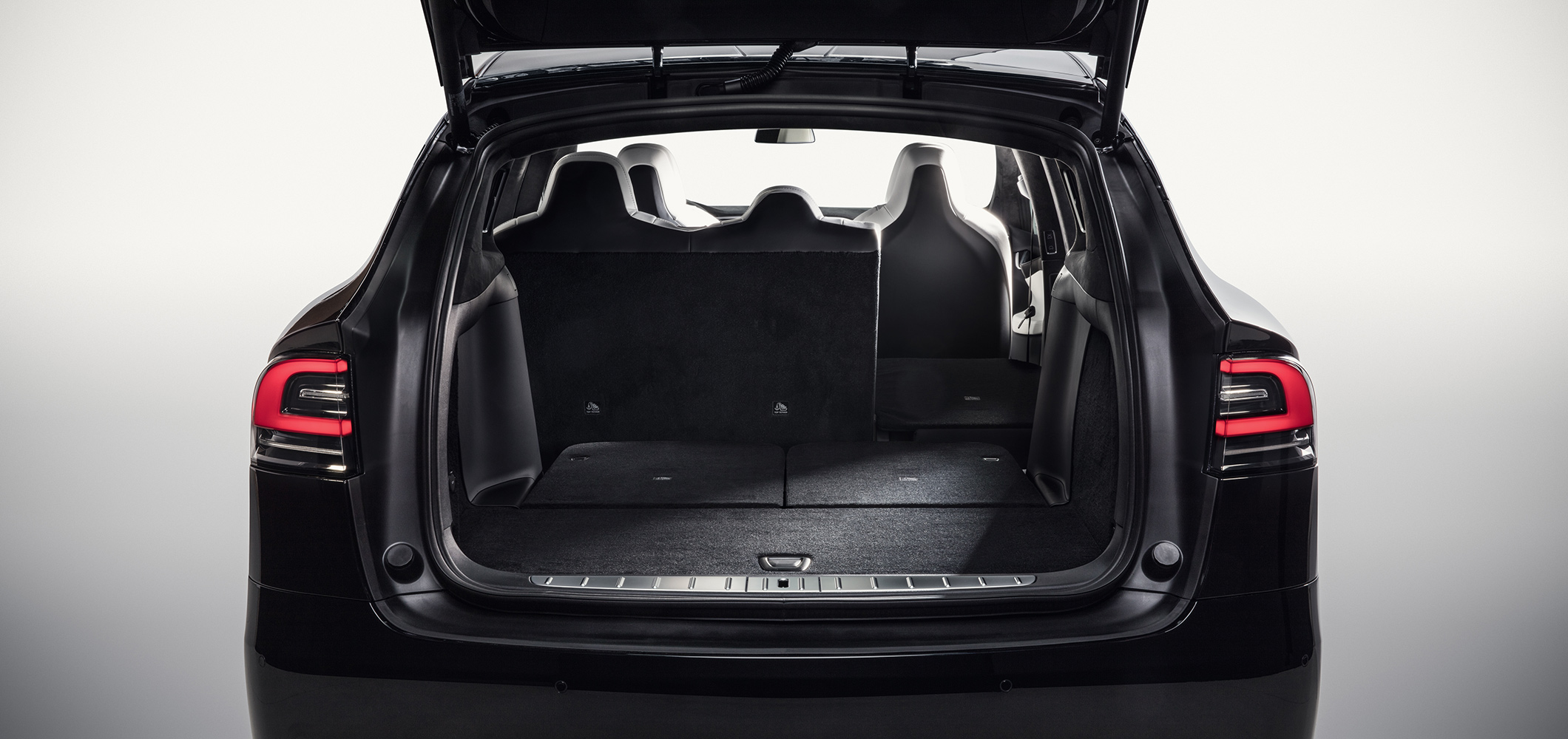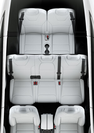 Model X has the most storage room of any sport utility vehicle in its class, and seating for up to seven adults. Designed to maximize passenger comfort, the second and third row in the seven-seat option are capable of folding flat and flush, creating extra cargo space. Available in three custom seating configurations, Model X can be optimized to suit the specific needs of you and your family.