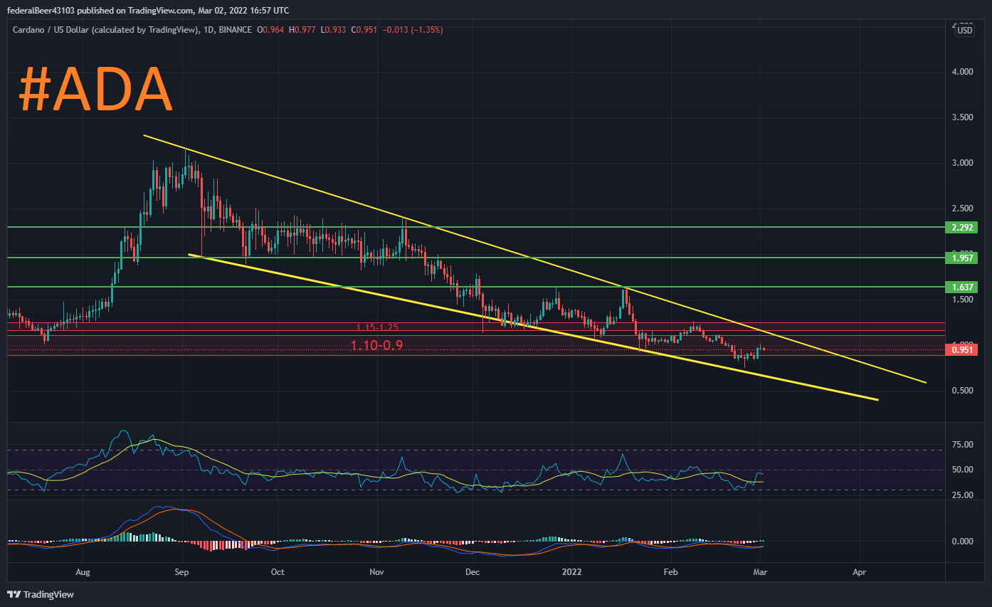 Cardano is forming a falling wedge pattern on the 1-day chart, which has been stretching since ATH. Once Cardano breaks through the resistance wall of the falling wedge pattern, I will be watching closely for confirmation in support, as I would not want to miss this trade under any circumstances! I'll keep you posted.