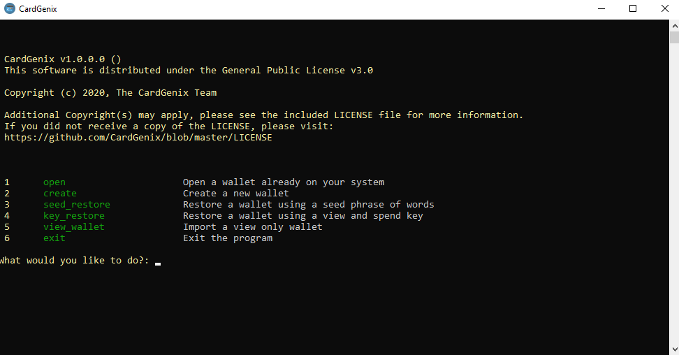 It's a simple and instructive interface that is executed through commands established by numbers. By typing option 2 you will create your wallet and your private keys and phrase. In my opinion the system is very simple it and we can also consider the system safe due to the simplicity and difficulty of intervention from external invasions.