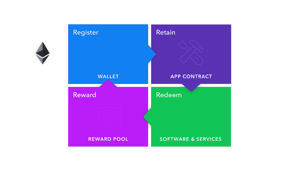 Để bắt đầu, người dùng chuyển đổi Cardstack Tokens thành tokens không chuyển nhượng được gọi là phiếu giảm giá phần mềm và dịch vụ (SSC - Software and Services Coupons) gắn với đô la Mỹ, trước khi phiếu thưởng được gửi trong hợp đồng lưu giữ của ứng dụng. Trong khi đó, Cardstack Tokens được thêm vào nhóm phần thưởng. Khi ứng dụng được sử dụng, phiếu giảm giá được ghi lại để tạo thành một lịch sử giao dịch trên mạng giúp xác định việc phân bổ Cardstack Tokens để thưởng cho các nhà sản xuất. Lịch sử của các sự kiện mua lại, kết hợp với các tập hợp dữ liệu tổng hợp khác và phân tích thống kê, giúp hợp đồng thông minh của nhóm thưởng toàn diện xác định phân bổ hợp lý và phân bổ phần thưởng cho các nhà sản xuất và thợ mỏ trong hệ sinh thái Cardstack.