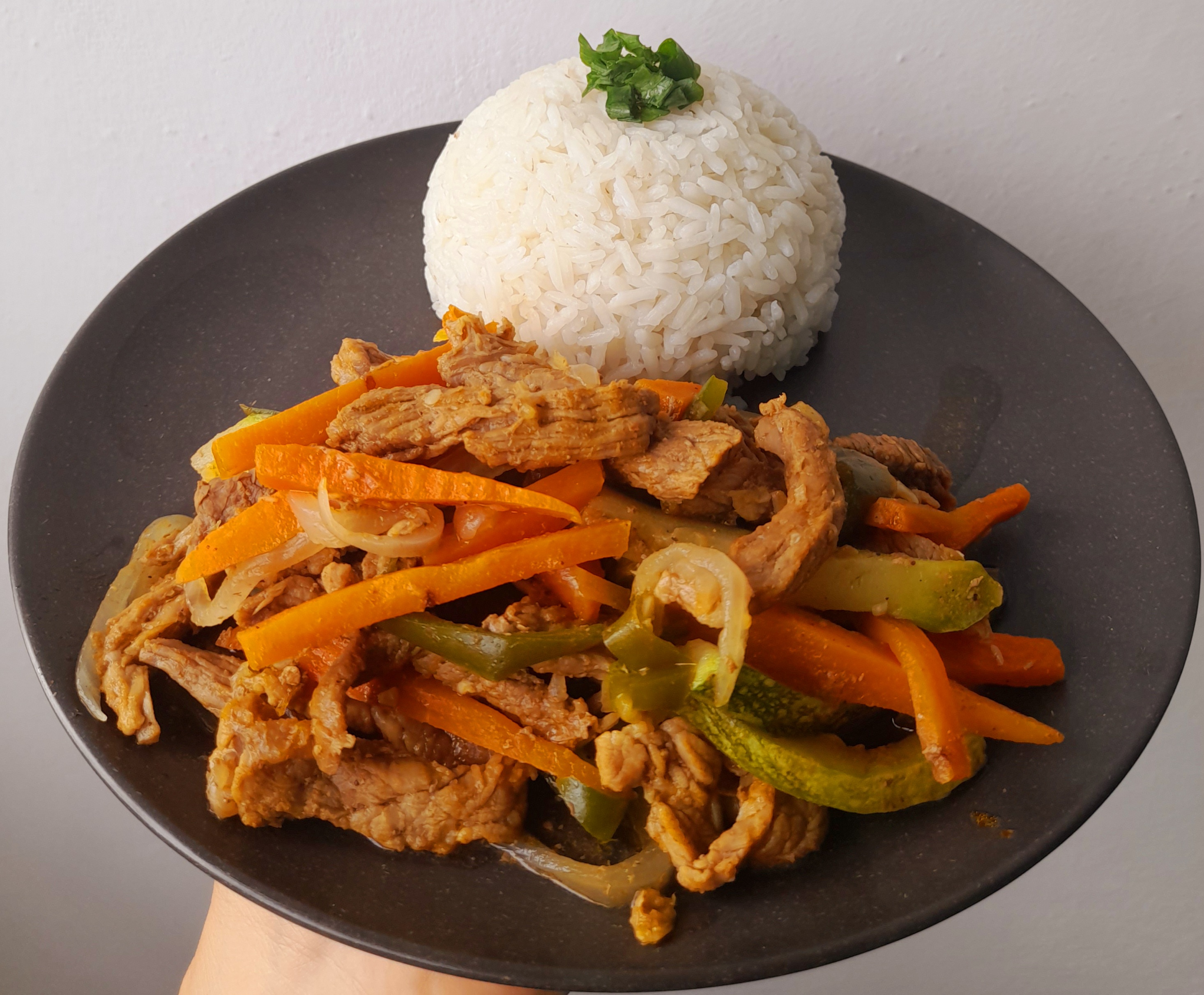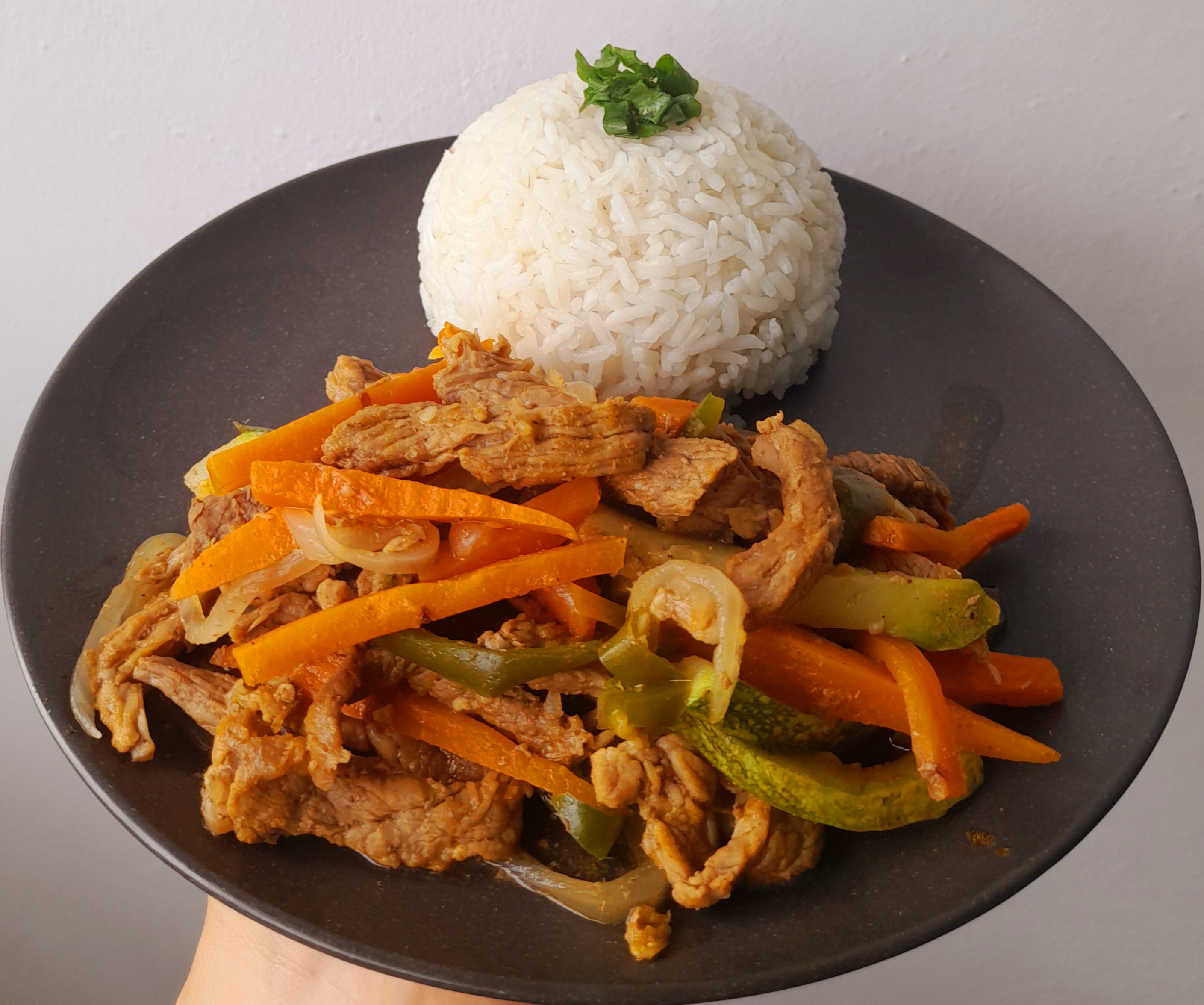 Servimos aun caliente, acompañado de arroz blanco. Y ya podemos disfrutar de esta deliciosa Carne de Res en Tiras con Vegetales.