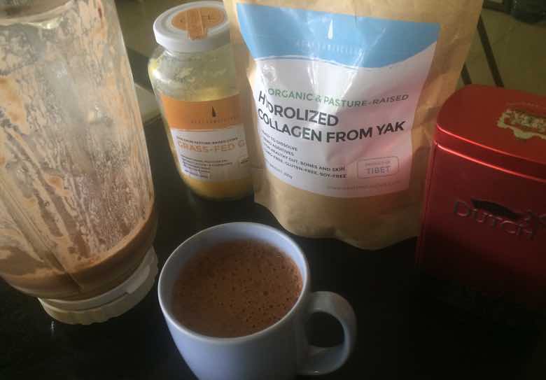 So I buy the cheaper grain fed product and add grass fed ghee to either broths or just in a blender with hot water and a bit of non sweetened cocoa powder and collagen. I do not know if the cocoa powder affects intestinal permeability, (would be very interesting to measure), but so far this is a quick and easy way to increase my fat from grass-fed sources without making a bone broth.
