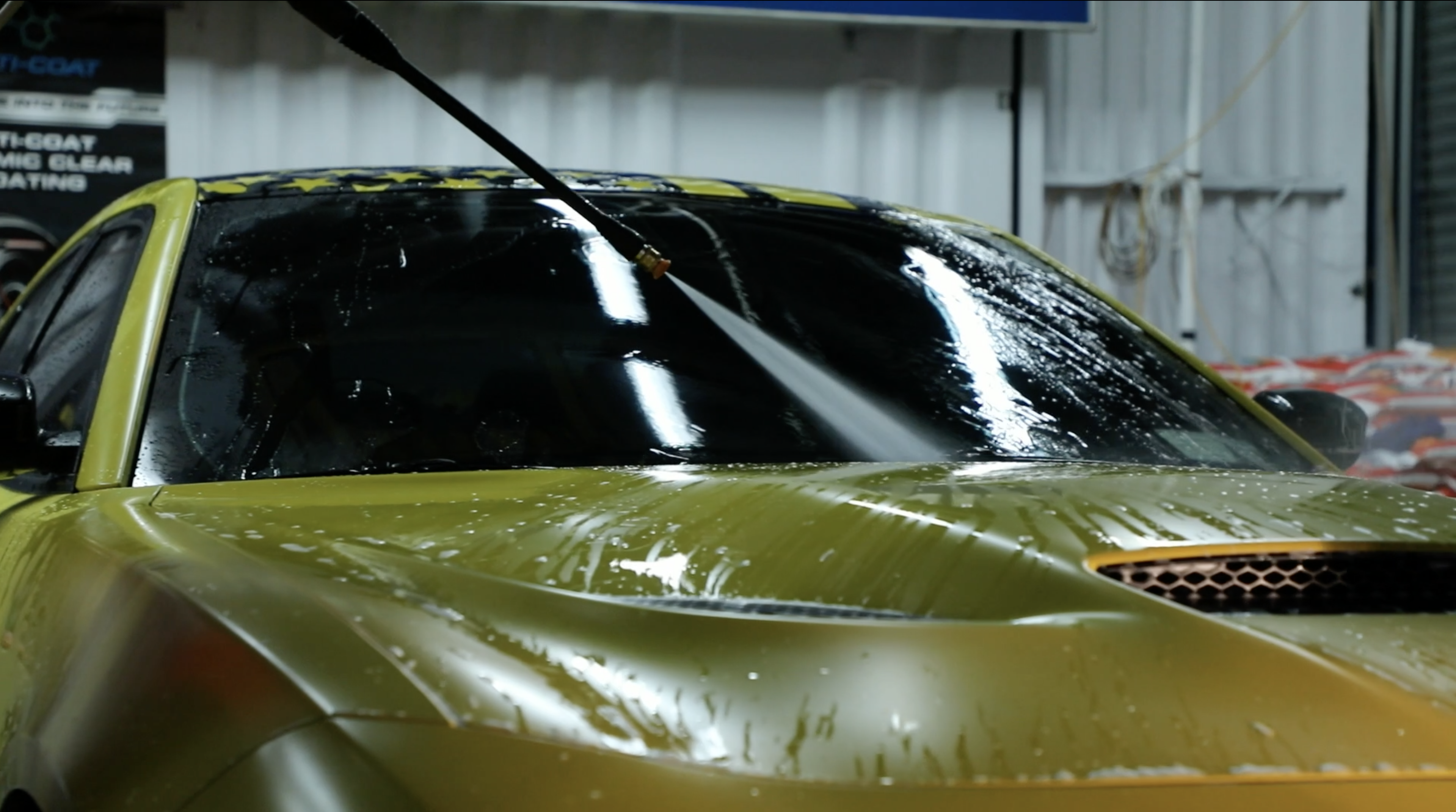 The loud noise of the air compressor was buzzing as the crew air dried off the Jeep with a high powered air gun. Beads of water were flying off into the air. As one team was air drying the body another team was wiping it down with a shammy. It was a perfectly synchronized effort that made this car wash a visual feast. It was like the gears of a clock. Everyone knew what they were supposed to do, and how to maximize their time. Shortly after starting this wash, a yellow SRT Hellcat pulled up and got in line. The owner of the yellow Hellcat, @srt.hellcat has over 72k following on instagram.