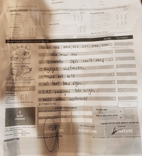 Look at how thick was the service invoice once the car has been done, took them around 3 weeks to perform all the servicing and recall tasks. The recall for this time involves: