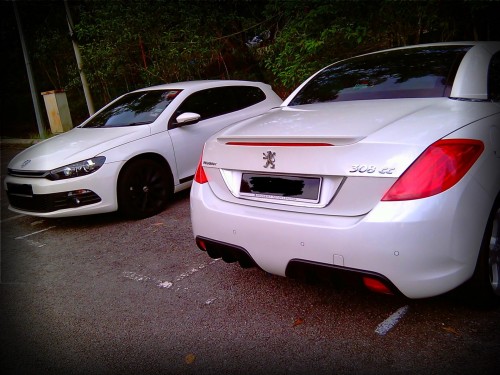 pic: the 308 CC parked next to a VW Scirocco
