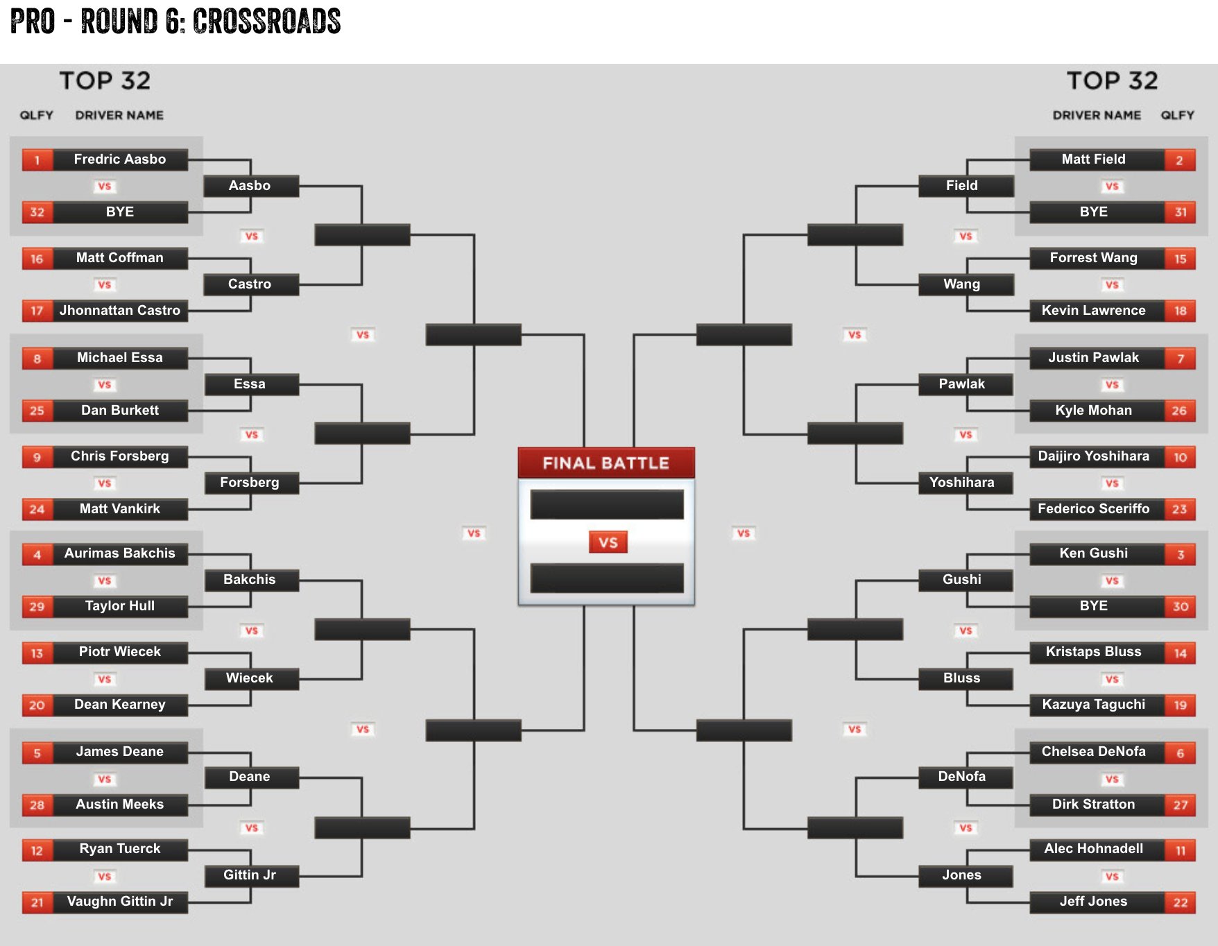 Yoshihara-Sceruffo: Yoshihara moves on to Top 16, Sceruffo had a slow initiation and lacked proximity on the long sweeper because of dropping a tire in the tough & go, then spins out at the end of the sweeper.