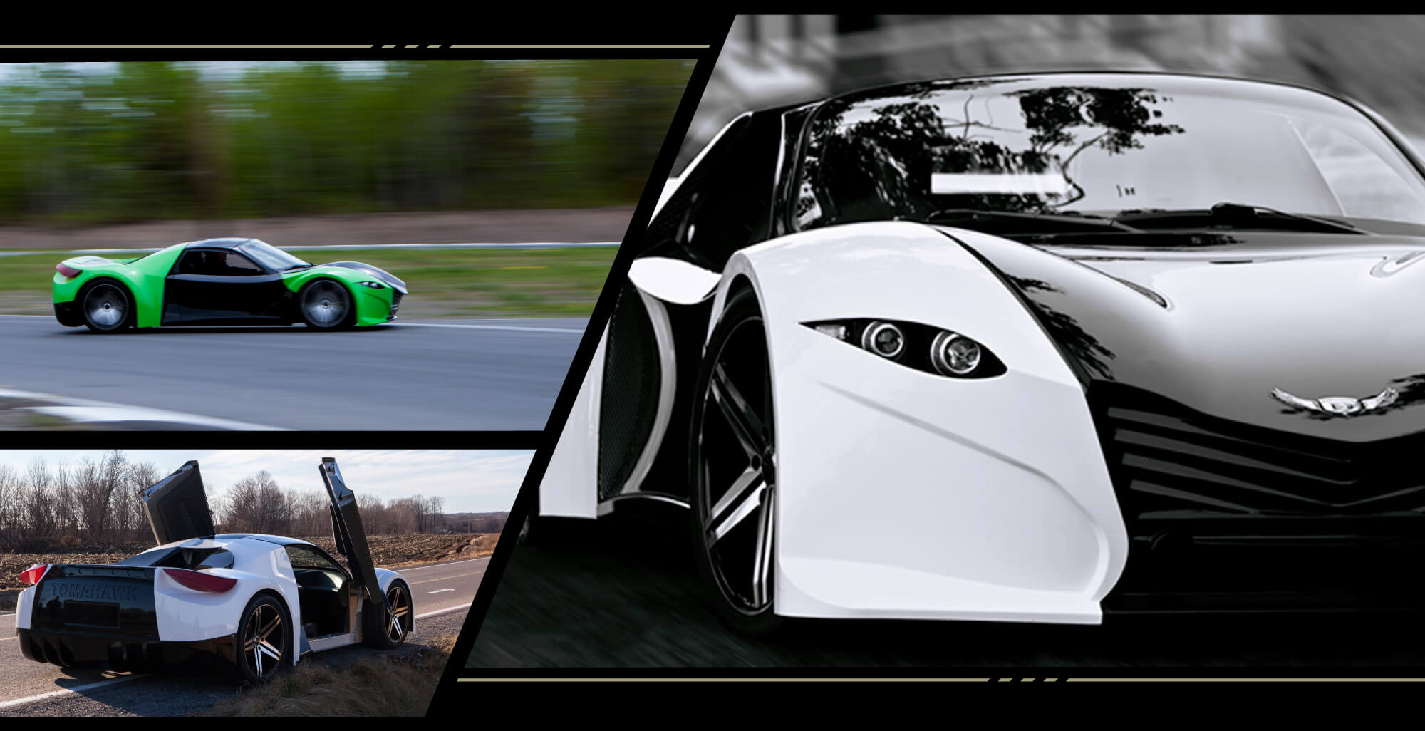 "Introducing the Tomahawk, the most pratical and high-end electric sportscar, approved by Mother Nature." (source)