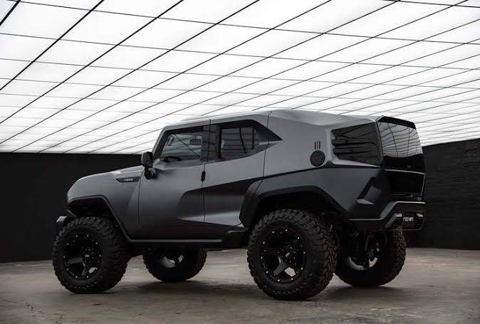 The Rezvani tank X is an extreme SUV which started out as Jeep Wrangler but now gets engine option up to 6.8 litre V8 producing 1000hp.