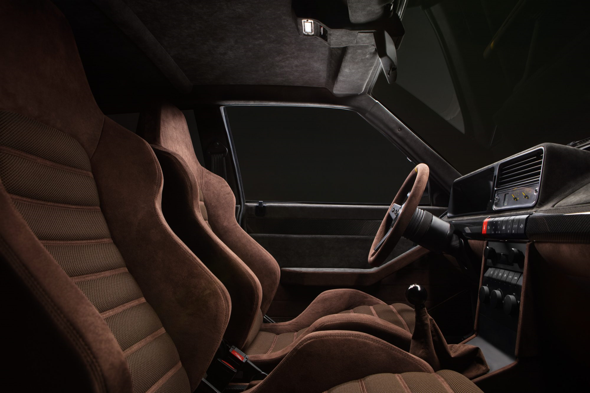 Interior-wise, the makeover continues. Gone are the old, worn 80s fabrics, and entirely replaced by Italian made Alcantara. This covers most of the interior-lining including, but not limited to; the Recaro front bucket seats, rear bench seats, the gear-lever cover, and the custom steering wheel (looks like Momo?).