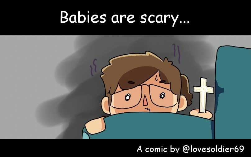 haha nice cartoon =) as a baby caretaker, I know that feeling very well. And then they turn into toddlers and don't get a whole let less scary, but can chase you =p