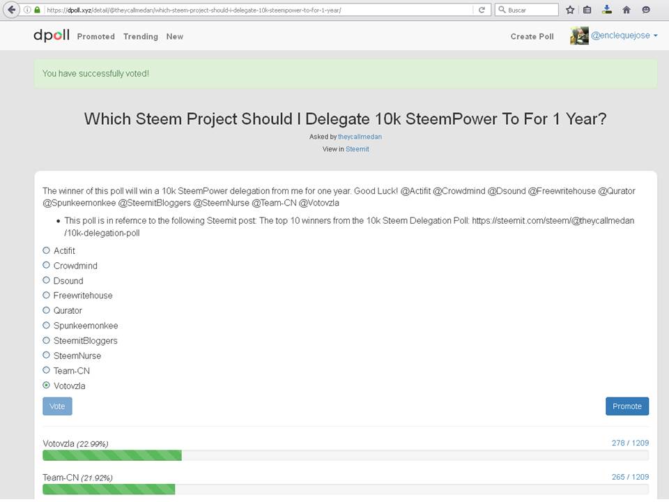 @votovzla esta concursando por una delegación de 10.000 STEEM POWER y necesita de tu voto. Es muy fácil votar ingresa en: