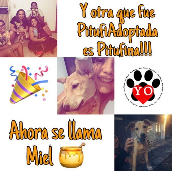 Su familia decidió llamarla Miel🍯 y ¿cómo no hacerlo? si nuestra pequeña es todo un tarro de dulzura, deseamos para ella un mar lleno de felicidad, que siga conquistando corazones y miles de gracias a su mami María Laura y familia por adoptarla🙌🏻.