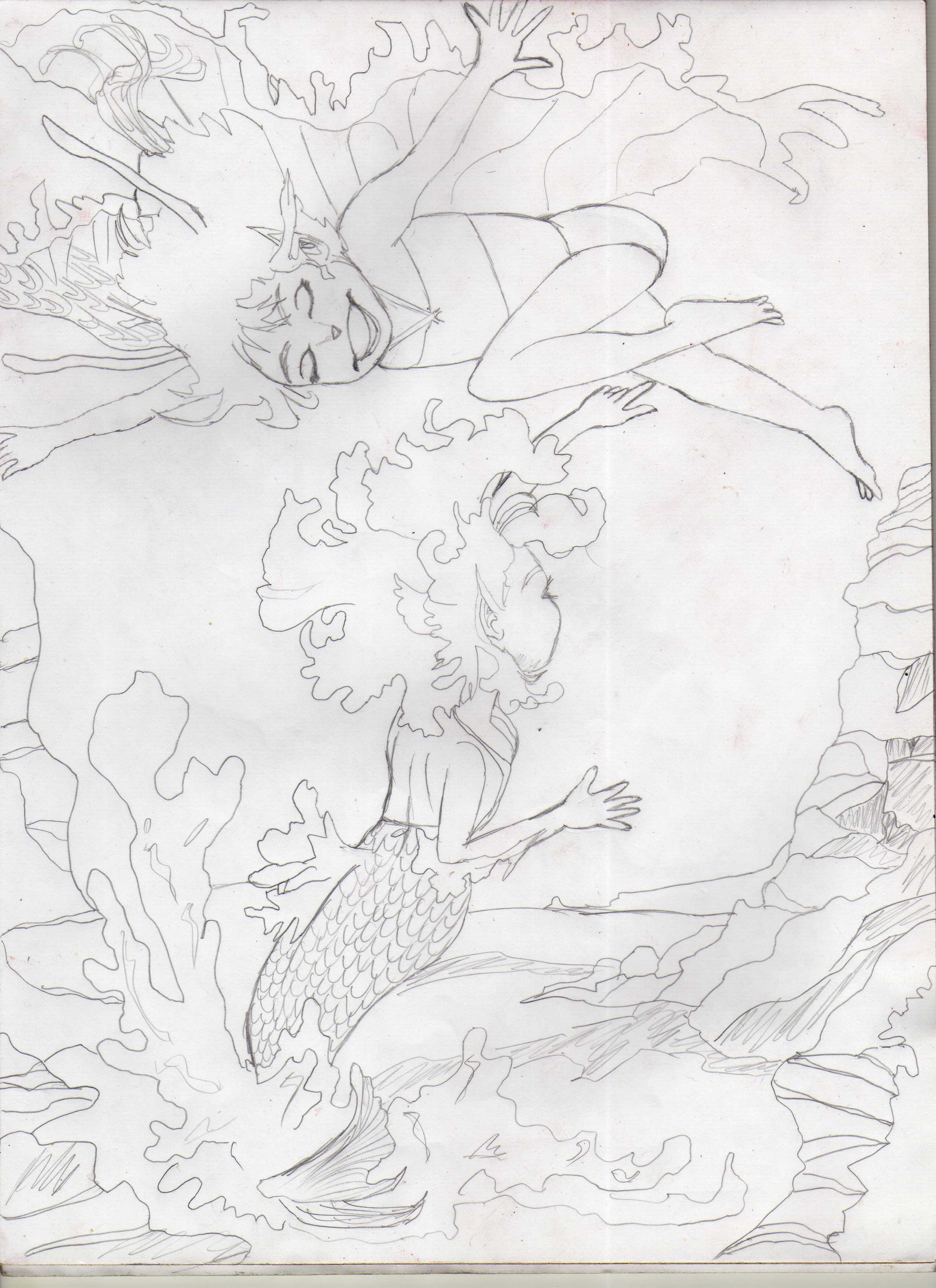 Luego empiezo a dibujar el hada, y el muelle de rocas.