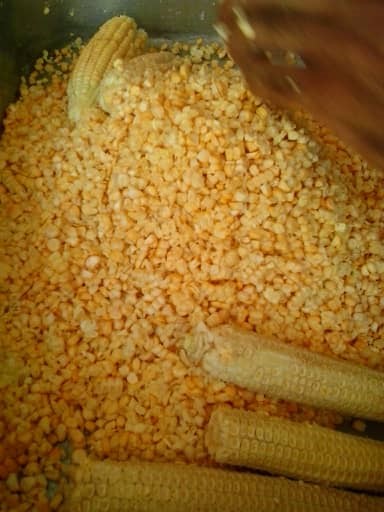 Retire las hojas del maíz, colóquelas en una taza donde se cortará para eliminar los granos, pasar por un molino o asistente mecánico. En una taza, coloque la masa y agregue, azúcar, aceite y sal, mezcle todos los ingredientes hasta que se forme una mezcla suave y cremosa, tóquela de un lado a otro, prepare las cachapas, para acompañarlas, margarina y queso de su preferencia, extiende la cachapa con la grasa y finalmente agrega el queso, agrega otra cachapa para el sándwich. Acompañe con deliciosas salchichas a la parrilla, prepare la cachapa al gusto.