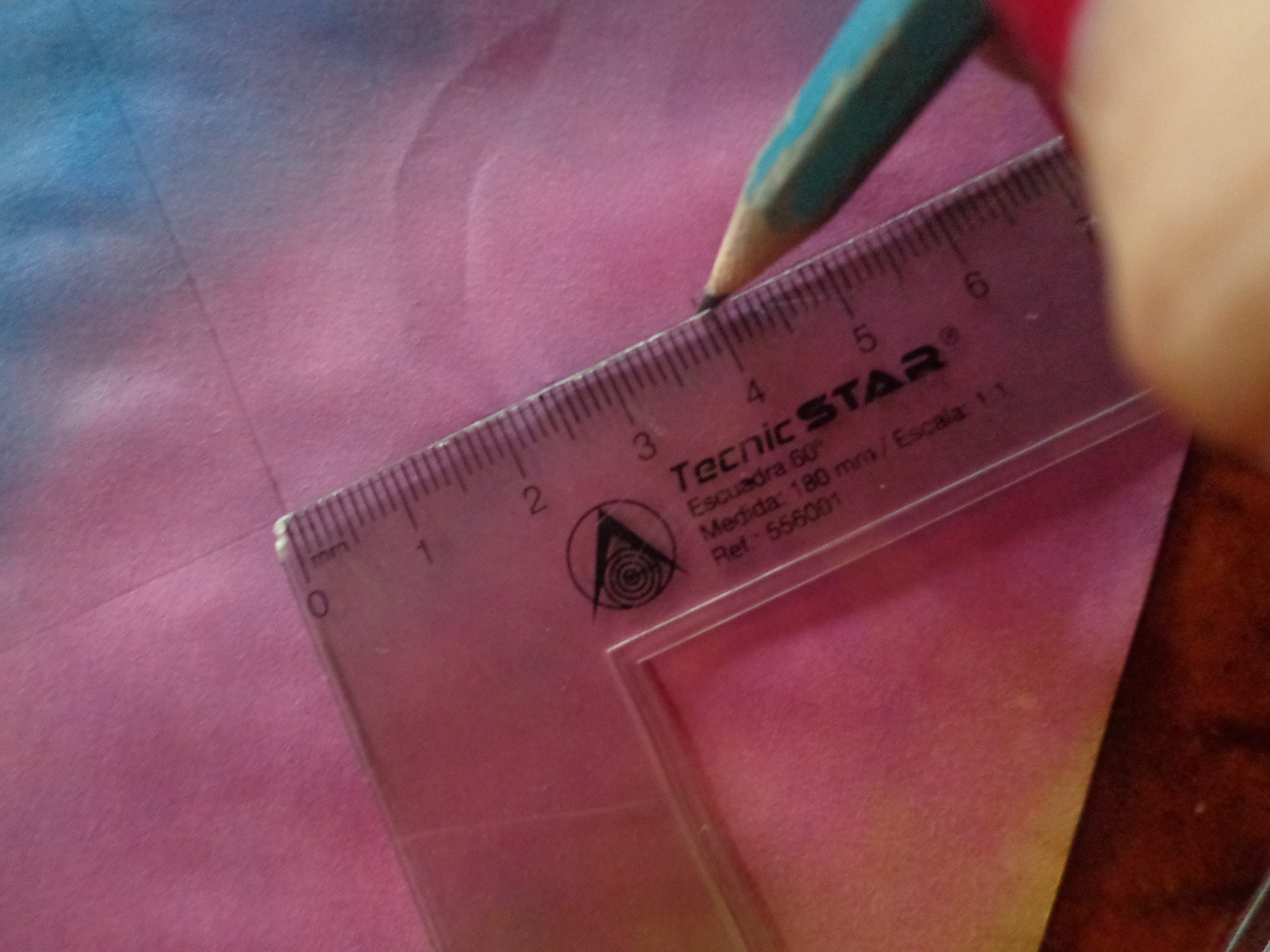 Luego desde el centro hasta cada punta se marca la mitad.