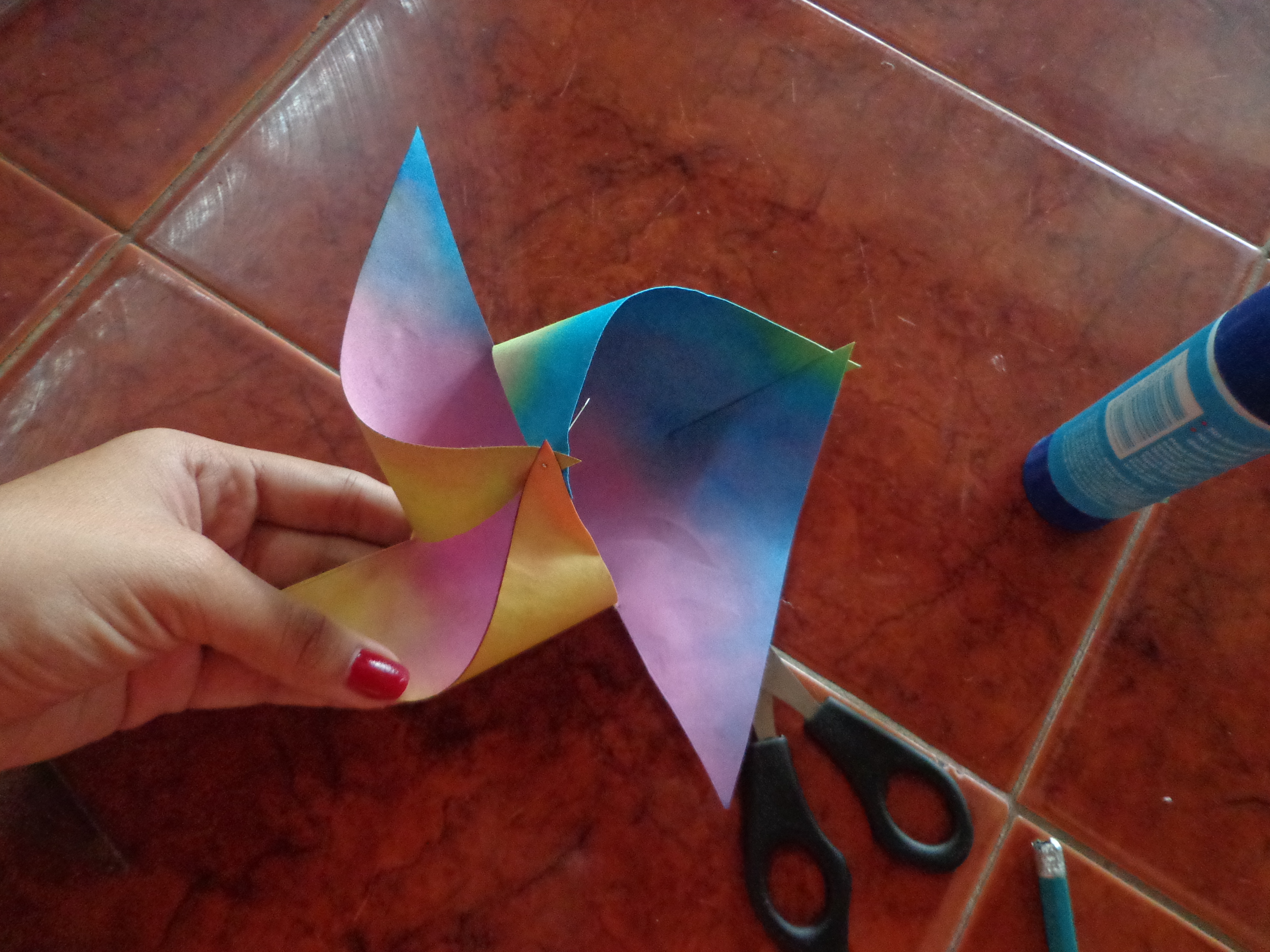 Se toma el chinche y se introduce en las esquinas, una de por medio.