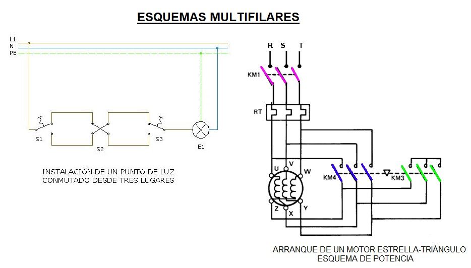 El esquema unifilar representa el contenido mínimo, el multifilar es más completo pero a veces más difícil de interpretar.