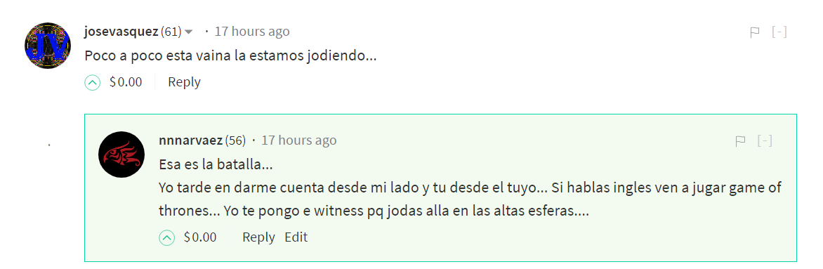 PEro es la mezcla del tabu de votar en comentarios y de llenar la blochain de conversaciones y que a veces hay cosas como numeros de telefono que es mejor darpor privado...