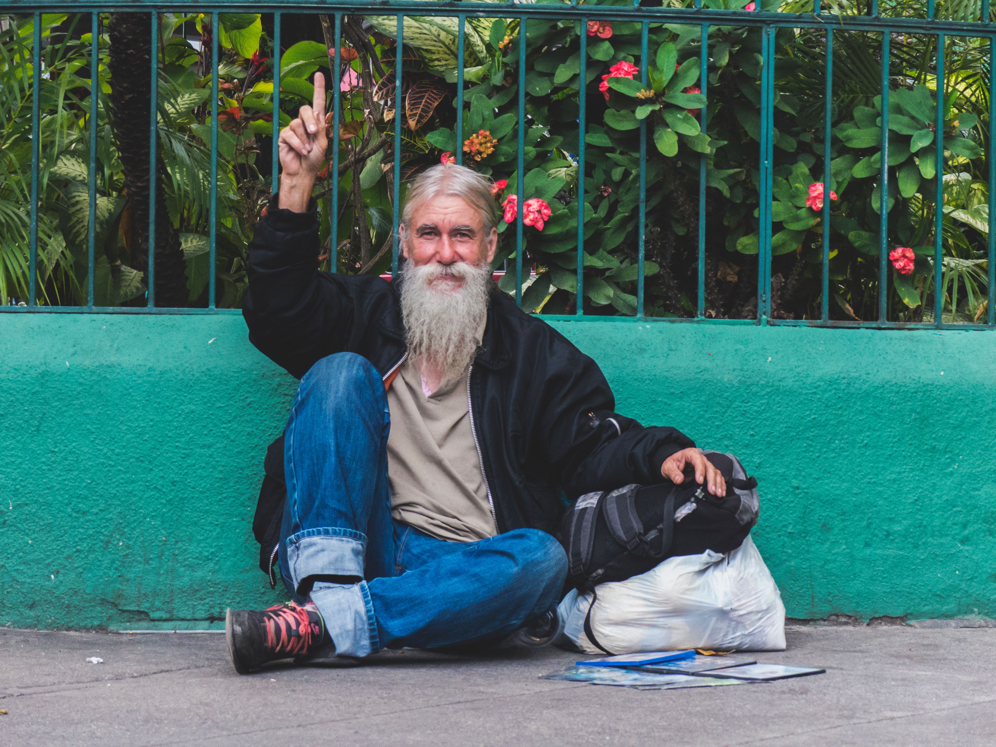 - Luego de haber charlado con él, le pedimos permiso para tomarle una fotografía, el cual accedió y, con el dedo bien en alto señalando al cielo y nombrando a Dios, decía: